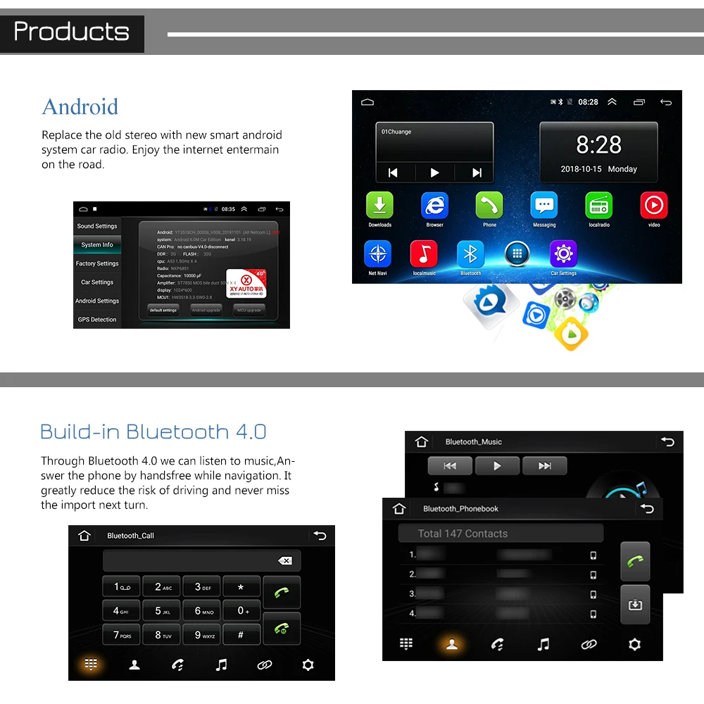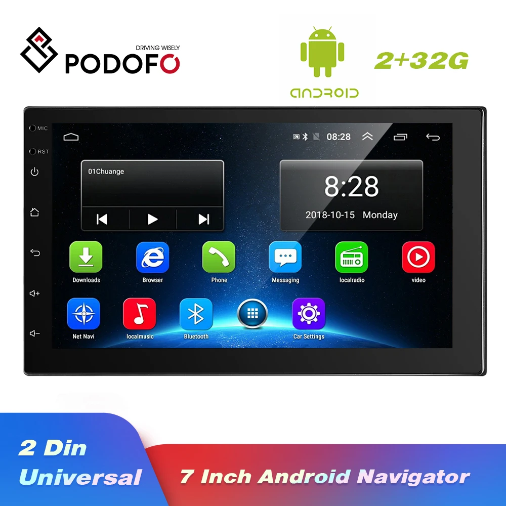 Podofo Android 2 Din Car Radio Multimedia Video Player Universal Auto Stereo GPS MAP 2G+32G Autorad
