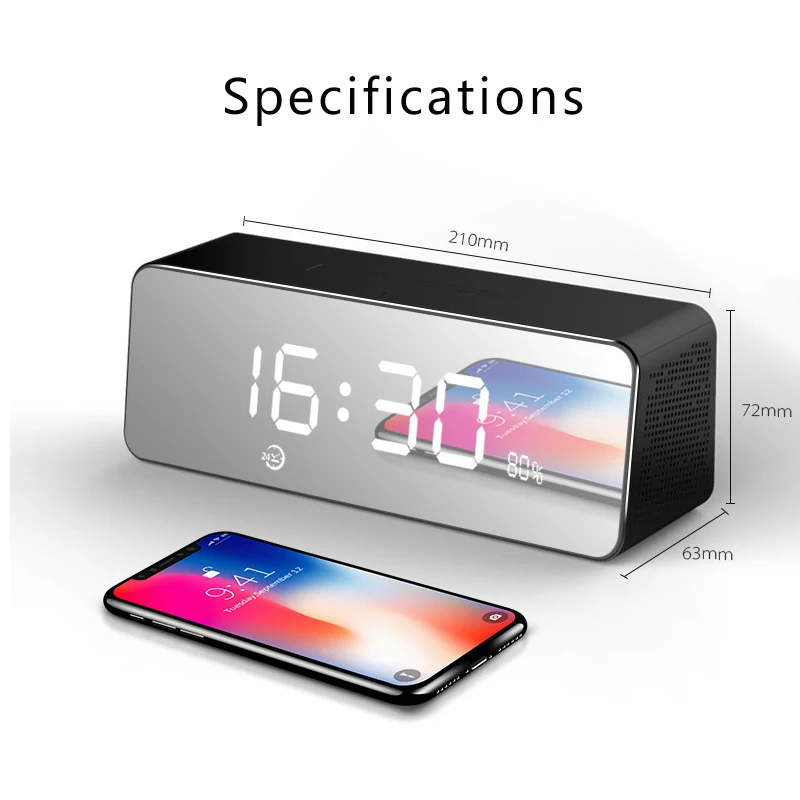 Digital Alarm Clock Snooze Home Desktop Clocks Bluetooth Electronic LED Display FM Radio Speaker Wa